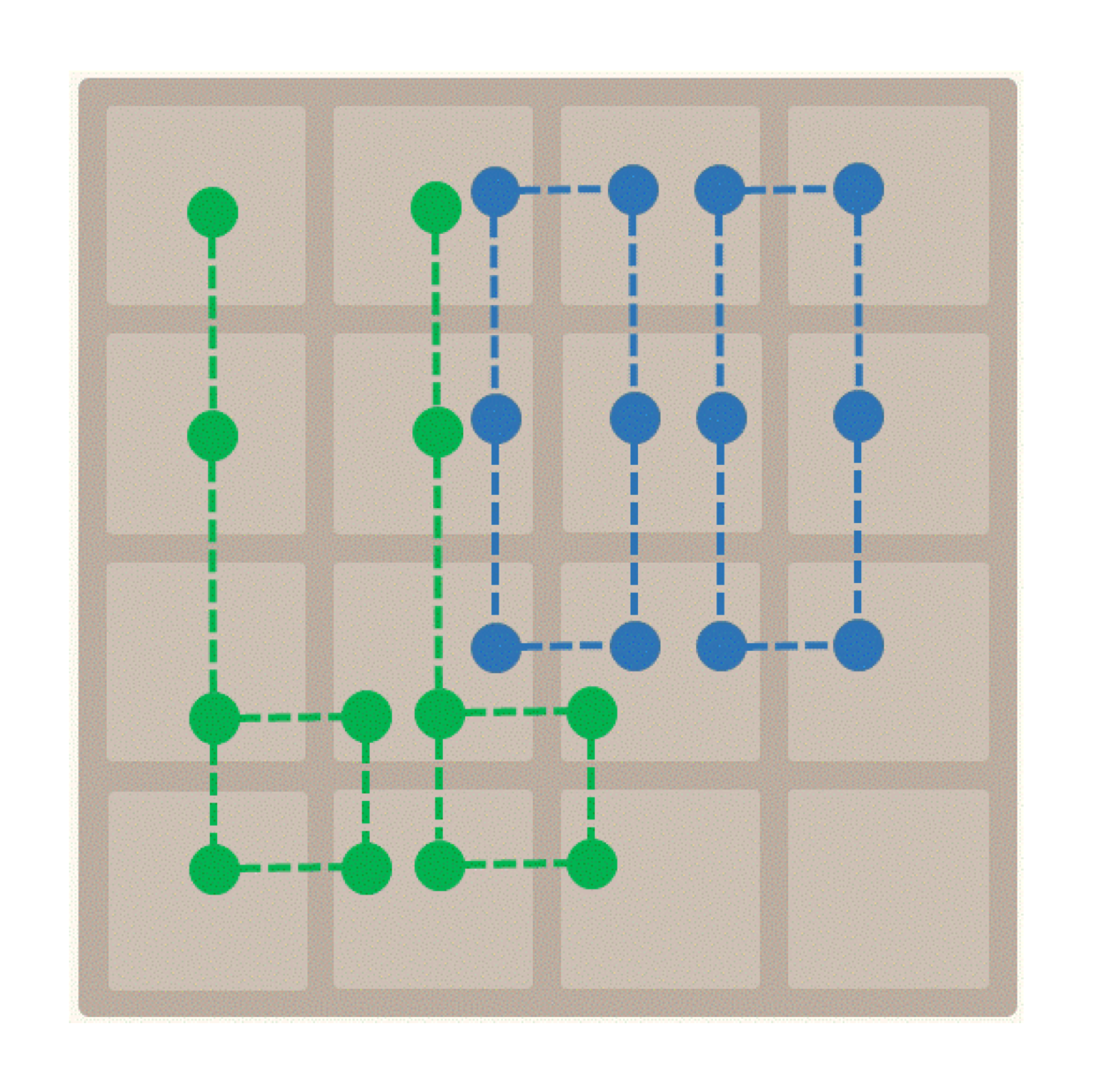 Tuple structure: In 2048, each tuple is a subset of squares on the 4x4 grid. Choosing the tuples is very important—the network will only be effective if the tuples capture meaningful patterns in the input. Rather than reinvent the wheel, I used the same 4x6-tuple network shown to work well in this paper by Yeh et al.